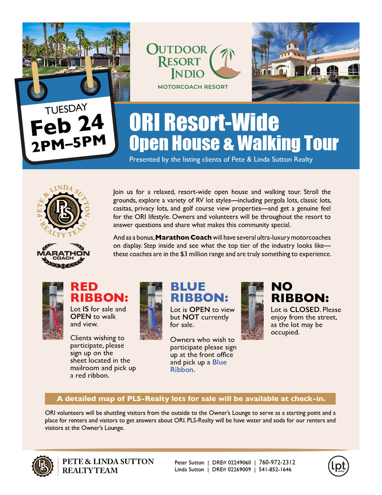 Join us for a relaxed, resort-wide open house and walking tour. Stroll the grounds, explore a variety of RV lot styles—including pergola lots, classic lots, casitas, privacy lots, and golf course view properties—and get a genuine feel for the ORI lifestyle. Owners and volunteers will be throughout the resort to answer questions and share what makes this community special.