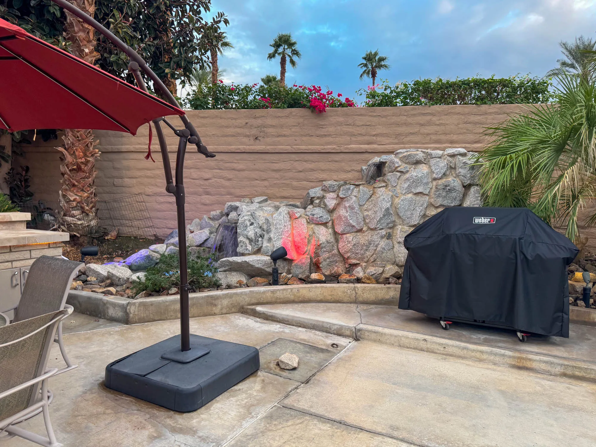 Waterfall ambiance, luxury pergola, pet-friendly with outdoor kitchen