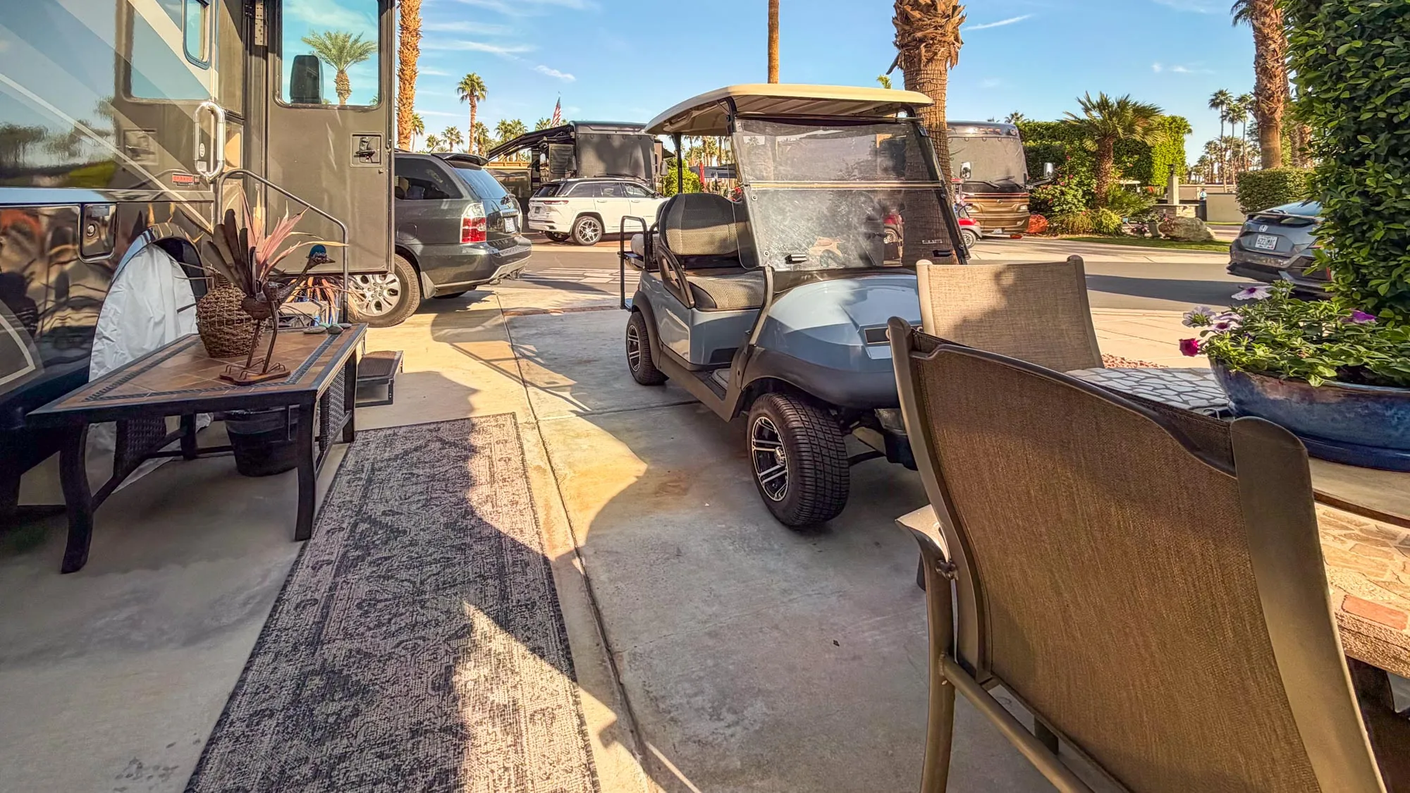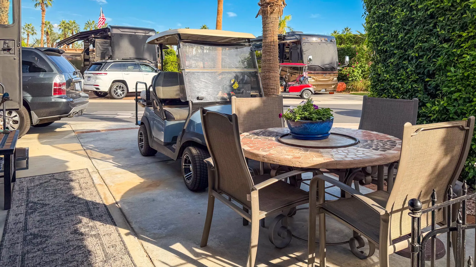 Private RV lot with shade, outdoor living, comfort, and convenience