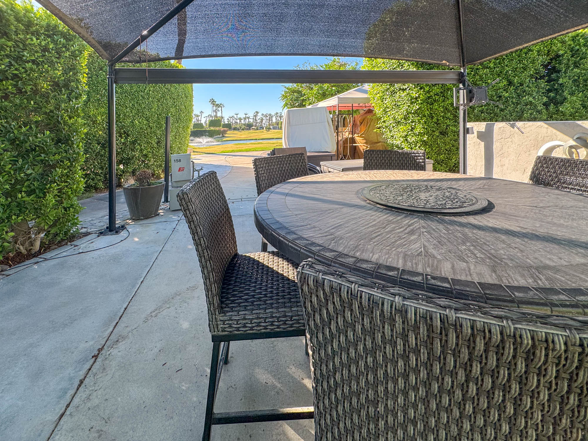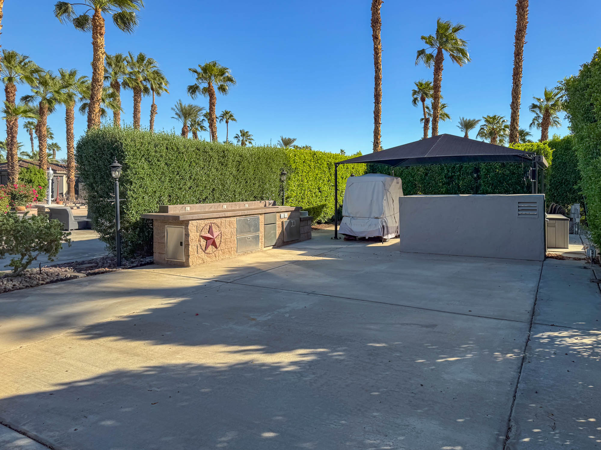 Tucked into a peaceful setting at Outdoor Resort Indio, Lot 158 offers the perfect balance of privacy, comfort, and resort-style living. Mature hedges frame the back and sides of the lot, creating a secluded outdoor retreat, while a small opening at the rear provides direct access to the Phase 2 golf course path and a glimpse of the fairway beyond.