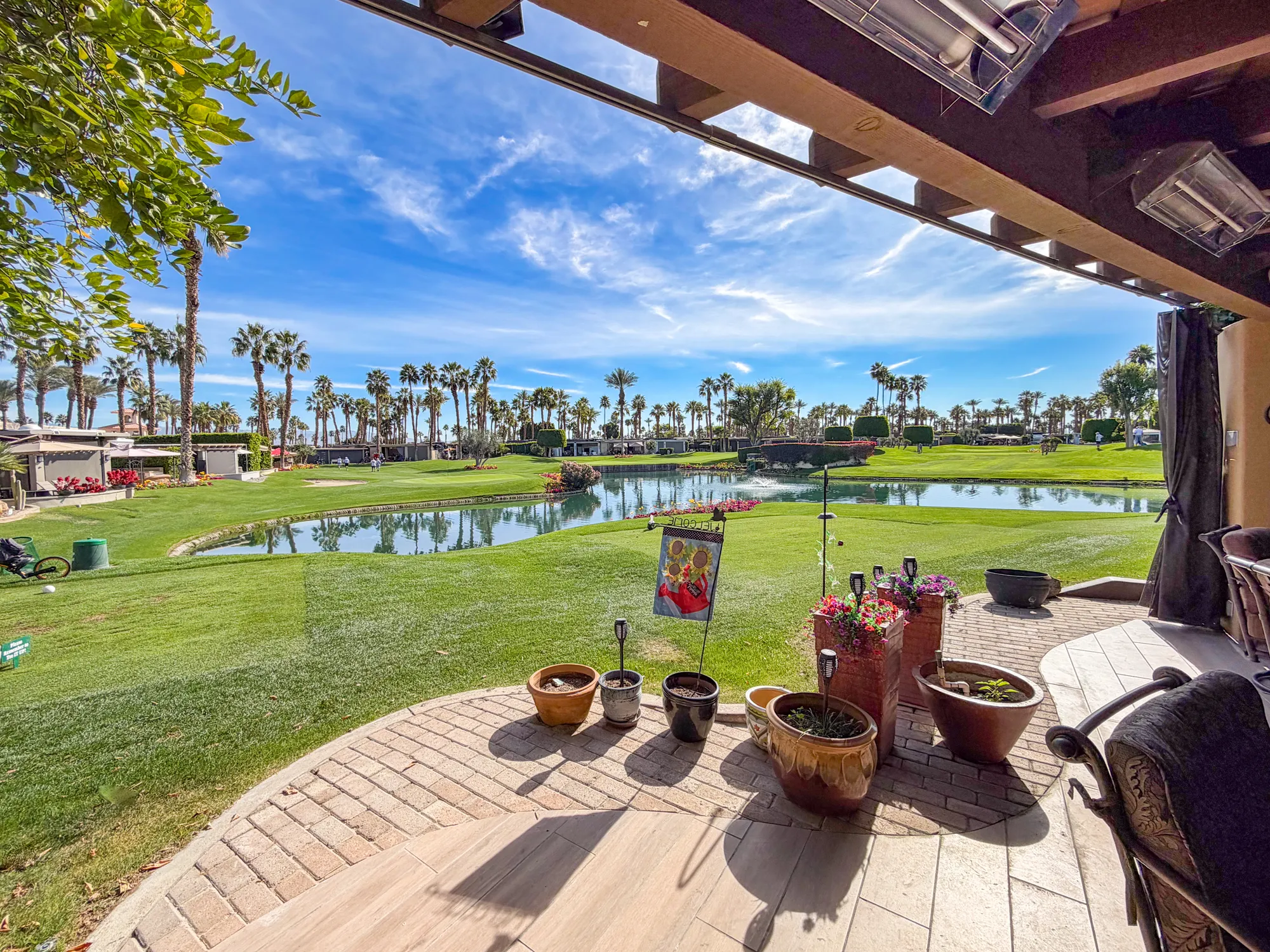 Enjoy a golf course view, morning sun and afternoon shade.