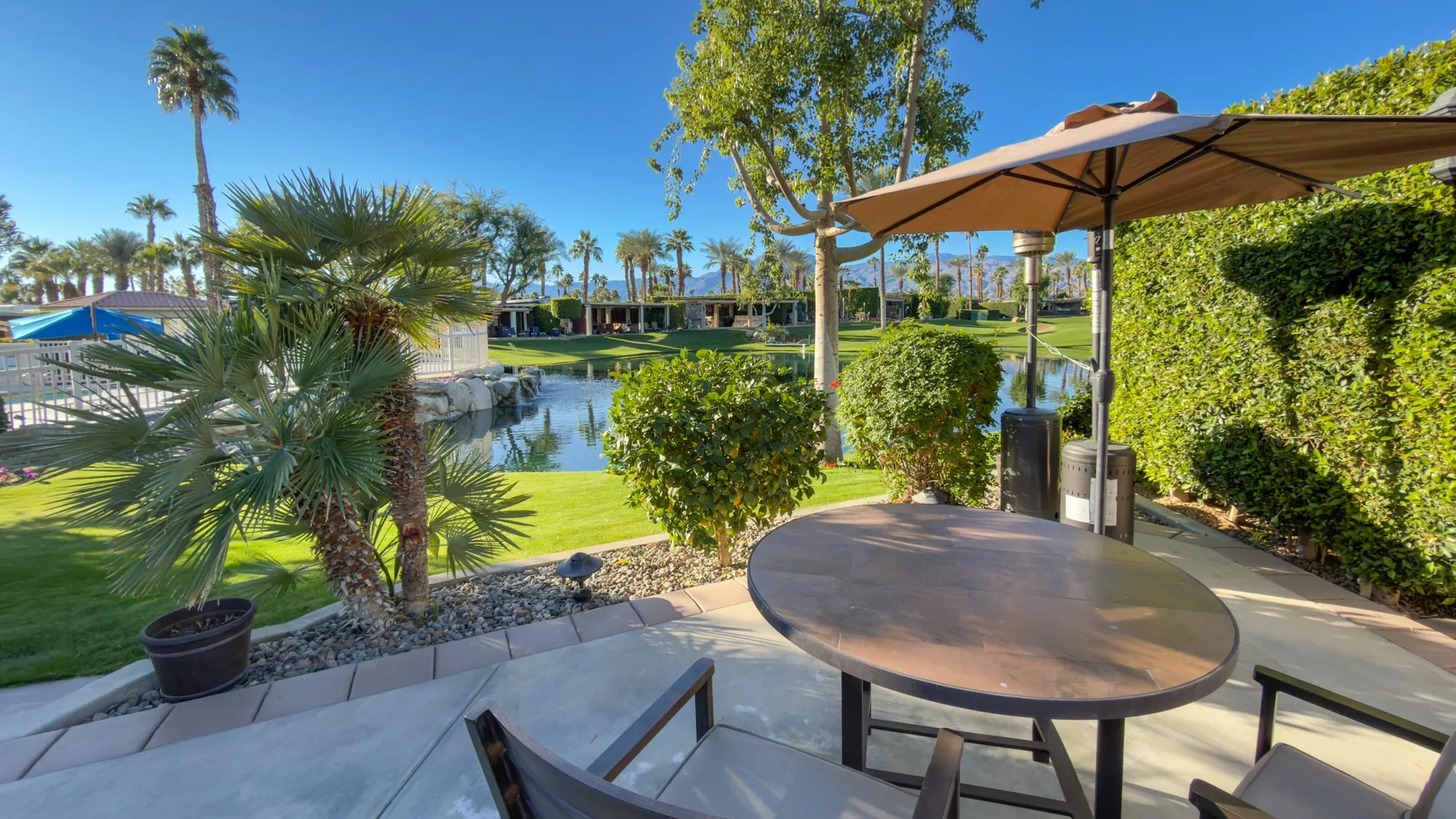 This private large motorcoach lot showcases breathtaking golf course, lake, and waterfall views with no neighbors behind you. At its heart is a solid-roof pergola, fully enclosed with electric sun screens and complemented by ceiling fans, heaters, and a mounted TV on a privacy wall with upper privacy glass for natural light. The kitchen cabinetry has the convenience of chrome pull-out racks for all of your kitchen goods. The pergola’s wrap-around kitchen showcases stainless appliances including a new double drawer refrigerator, new cooktop, new 15 gallon hot water heater and porcelain counters, while a raised back porch with a built-in BBQ island creates the perfect setting for effortless entertaining. With desert landscaping at the front, convenient mid-lot hookups, and a satellite pool just steps away, this property offers the perfect blend of comfort, style, and unforgettable scenery. An added note, the kitchen was remodeled one year ago with all new plumbing and wiring.